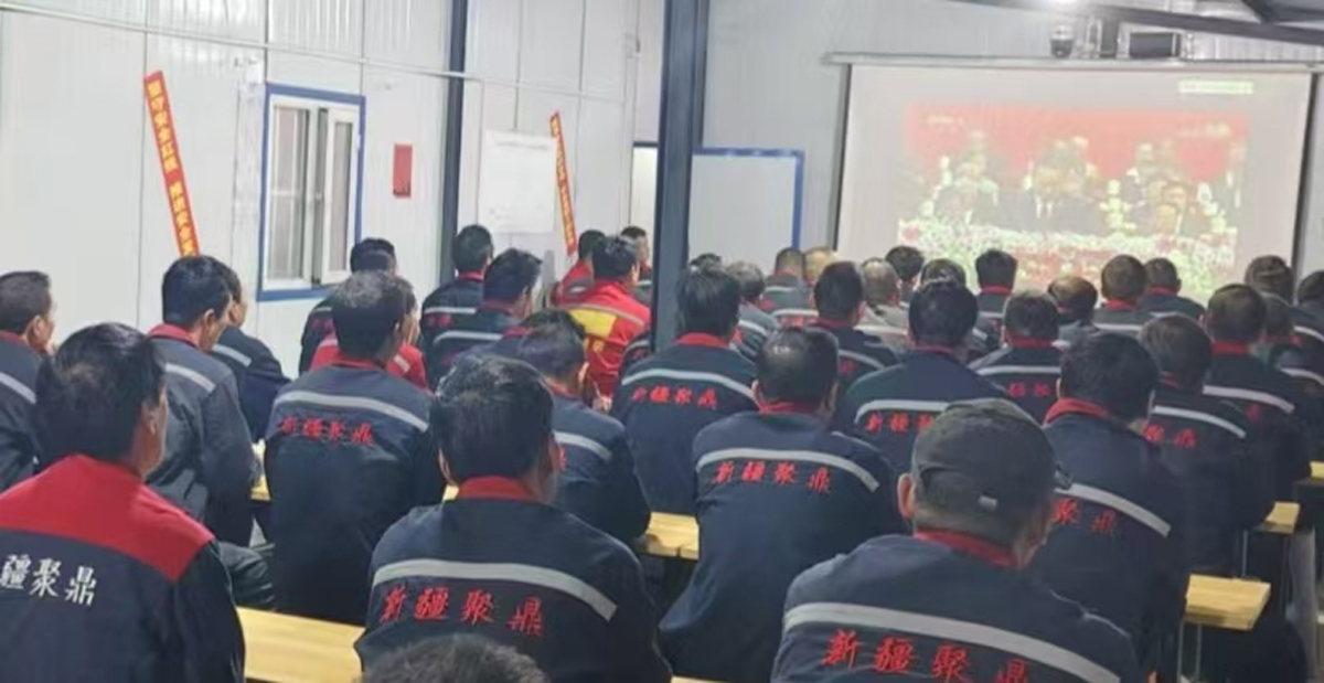 新疆聚鼎建設(shè)建設(shè)工程有限公司全員觀看自治區(qū)70周年大慶直播