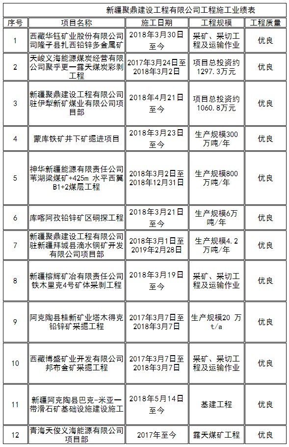 新疆聚鼎建設(shè)工程有限公司為國家礦山工程總承包二級企業(yè),創(chuàng)建于2013年,主要從事礦山采掘、隧道開挖、大型土石方爆破、機(jī)電設(shè)備安裝,水利水電工程,路橋工程等工程施工。